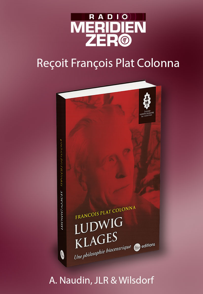 Pour évoquer sur Méridien Zéro la figure de Ludwig Klages nous avons le plaisir de recevoir François Plat Colonna qui vient de sortir un ouvrage passionnant aux éditions de la Nouvelle Librairie dans la collection « Longue Mémoire » intitulé « Ludwig Klages. Une philosophie biocentrique ».